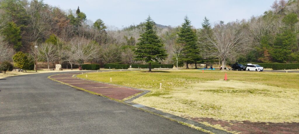 その車道沿いに各サイトが配置されている構造で、どのサイトでも比較的スムーズに車を横付けできるのが特徴です。
