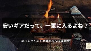 安いキャンプギアは一軍に入らない?メーカー物じゃないと不安?そんなモヤモヤを、のぶるさんが座談会形式でゆるく語ります。「一軍」の基準は値段じゃない――あなたはどう思いますか?