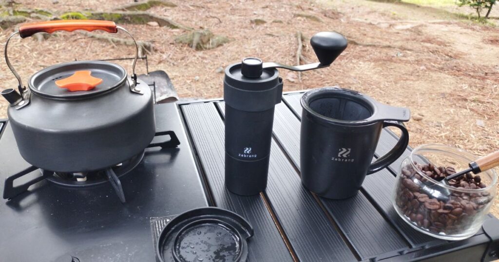 豆を挽くたびに香りがぐっと立ち上がって、キャンプの朝が始まる感覚になります。