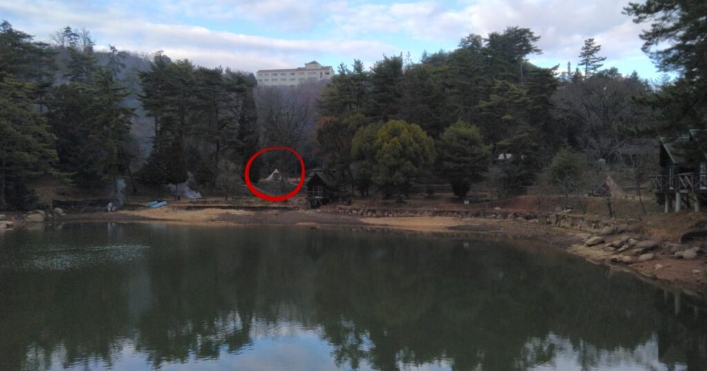 藤沢池を挟んで、反対側から見る自分たちのサイト。