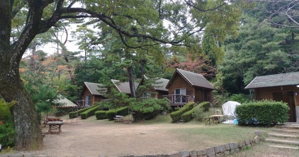藤沢池キャンプ場には、池の周囲や管理棟横などに複数のバンガローがあります。