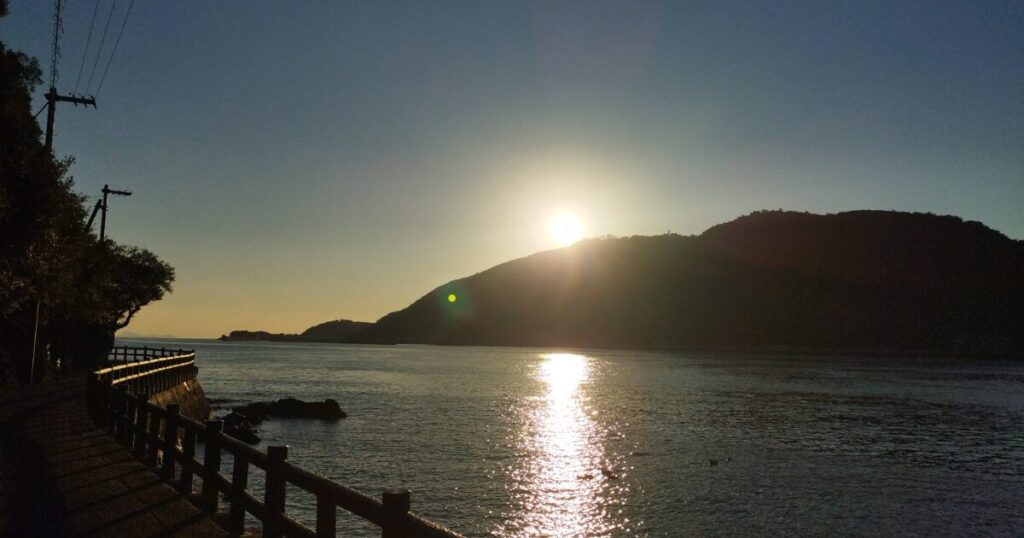 海面に夕陽が反射して映画みたいでした。