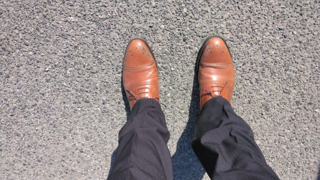 静かに現実を突きつけてくる革靴。