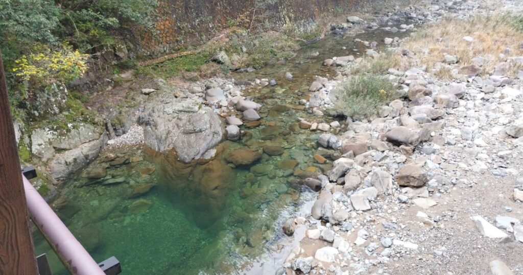 川と山と空がきれいに重なり合い、思わず足を止めてしまいます。